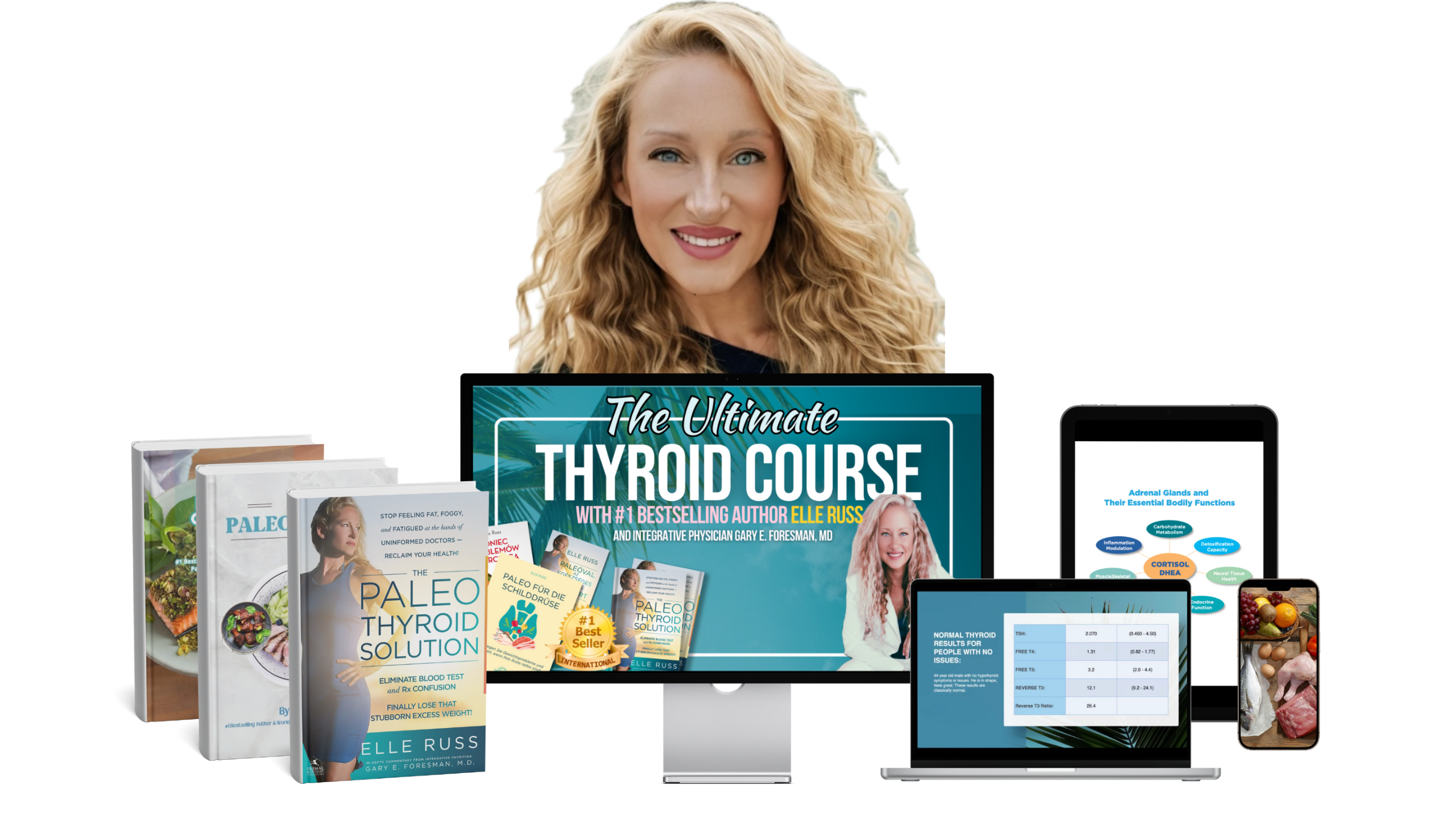 The #1 self-empowerment program for thyroid healing & transformation. Includes in-depth thyroid hormone dosing protocols, weight loss strategies, and much more. Eleven hours of tutorials with Elle Russ, four hours of instruction with Dr. Gary E. Foresman MD + other health experts. Read amazing reviews by patients and doctors. Self-paced. Lifetime access.